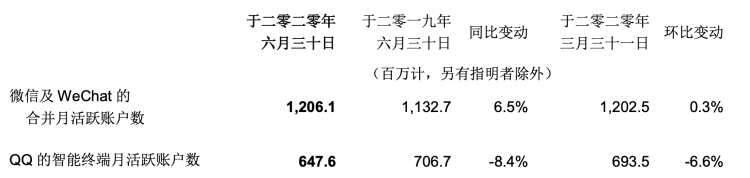 因此對于騰訊來說,微信(包括WeChat)用戶情況是支撐廣告收入的活水。第二季度微信及WeChat的MAU數為12.06億人,環比增長0.3%。